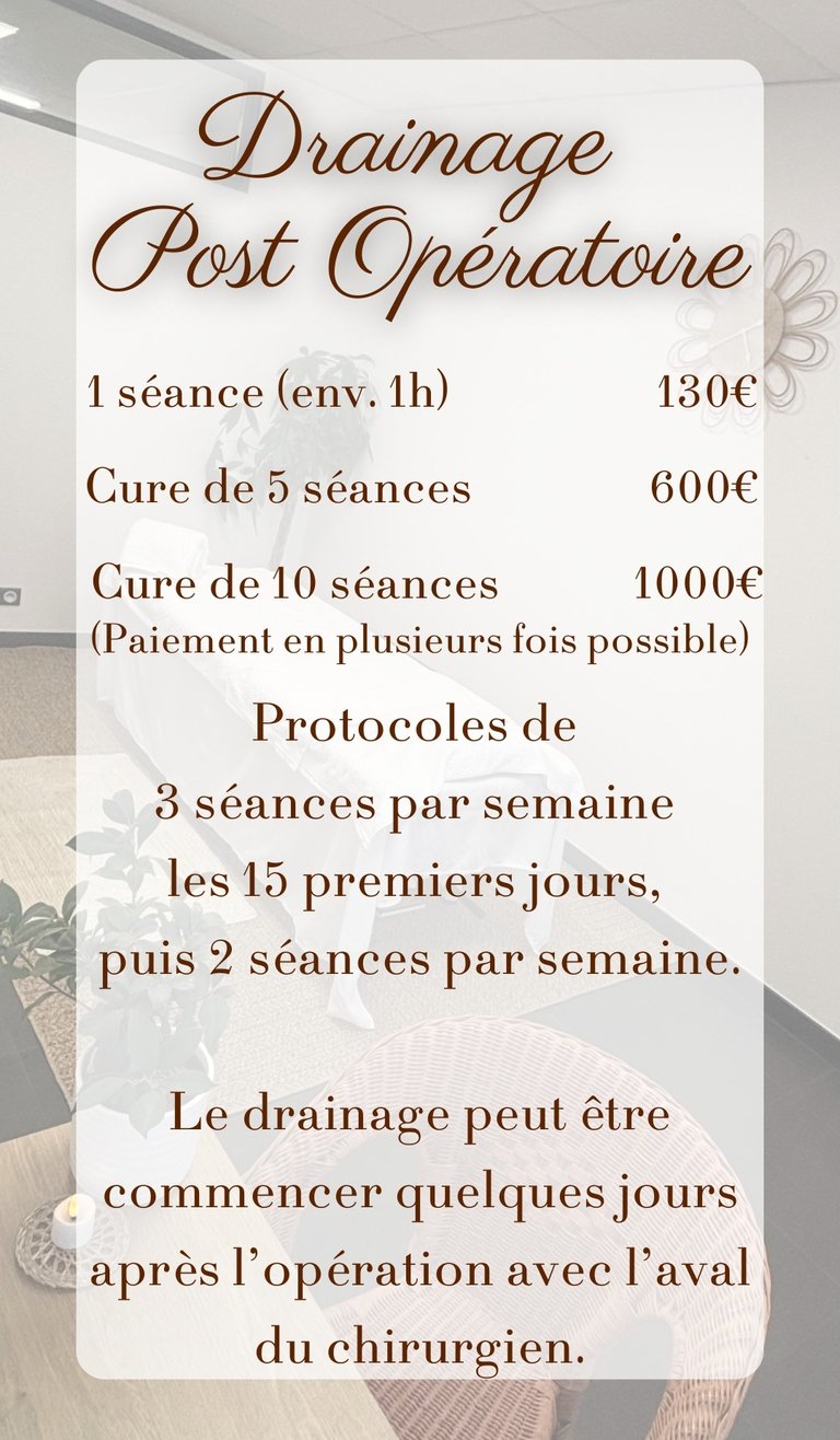 Le drainage pré & post opératoire aide le corps à récupérer plus rapidement et à réduire les inconforts liés à l’intervention.